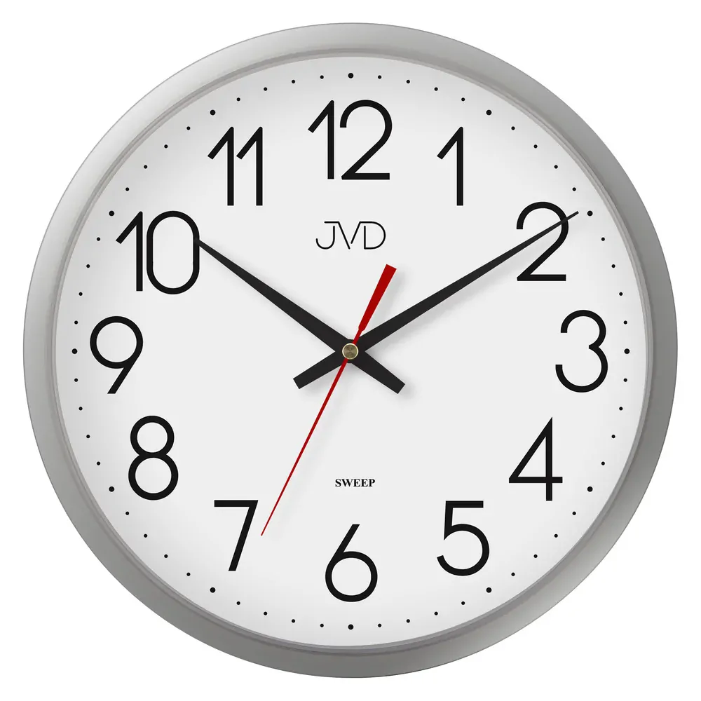 JVD Stříbrné nástěnné netikající kulaté hodiny JVD HP614.2