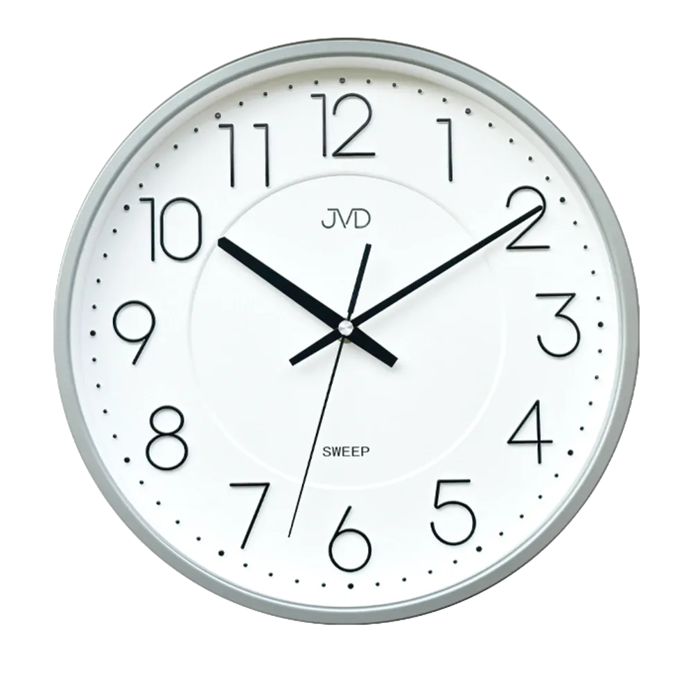 - JVD Stříbrné nástěnné tiché netikající hodiny JVD HX2495.1
