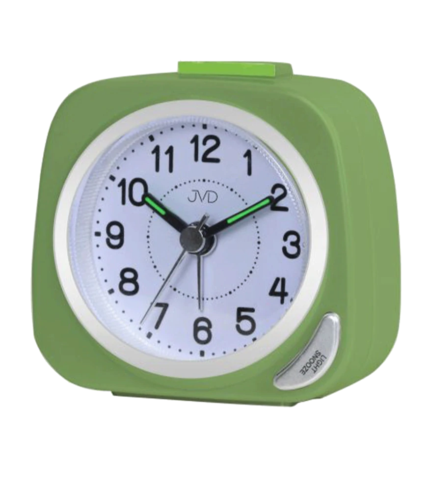 JVD Zelený tichý ručkový budík s plynulým chodem a podsvícením JVD SRP7202.3
