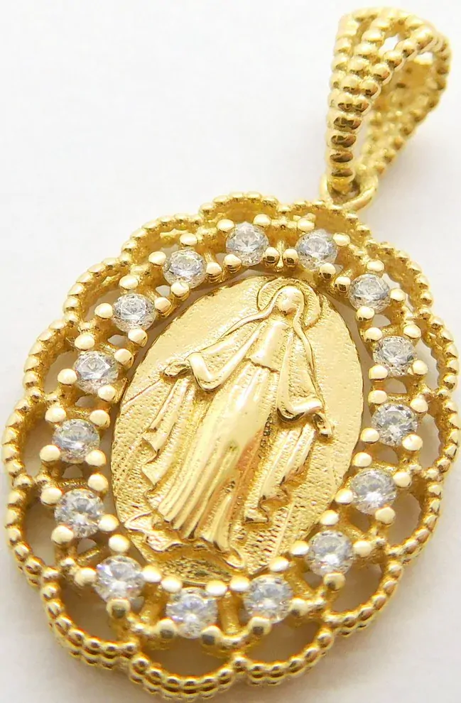 Klenoty Budín Dámská gravírovaná zlatá madonka s Ježíšem se zirkony 585/1,92gr HK3183