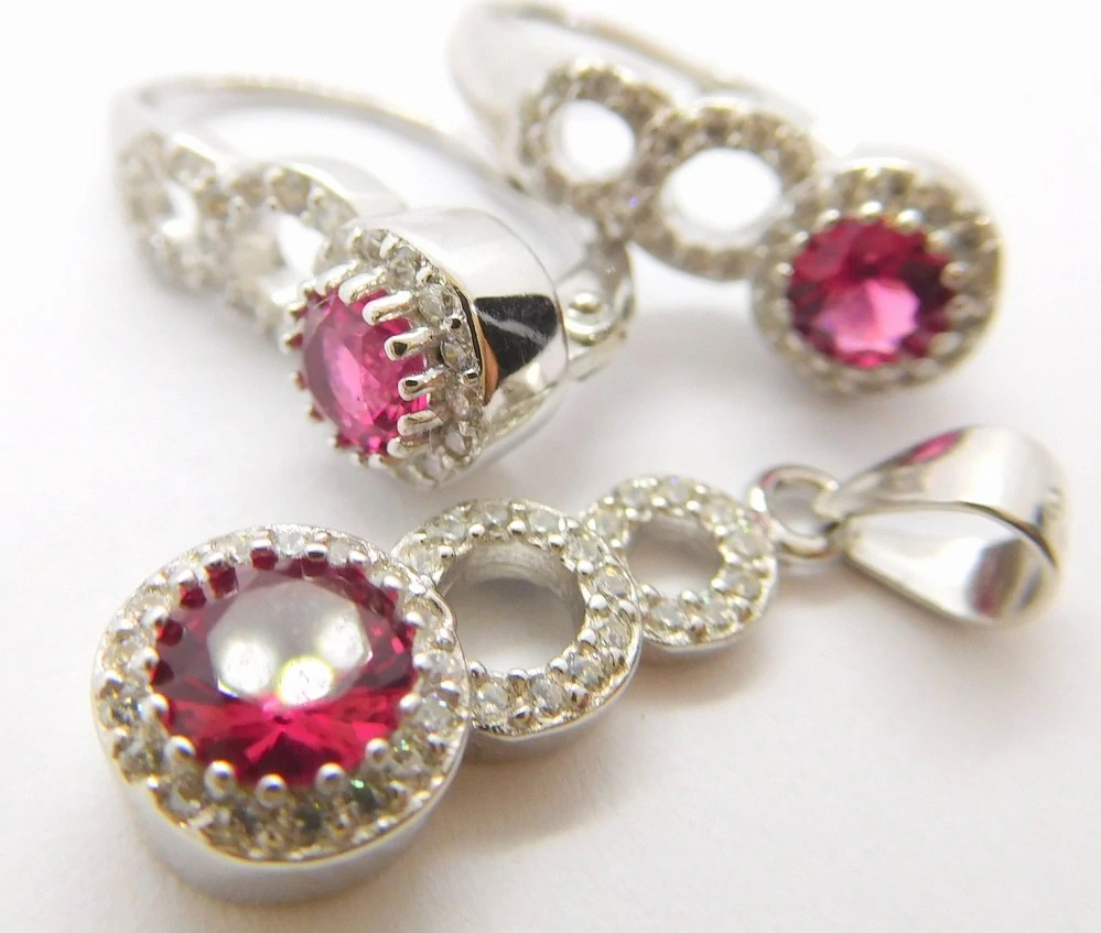 Klenoty Budín Dámská mohutná stříbrná souprava se zirkony a červenými rubíny ryz. 925/1000 (náušnice + přívěsek) 031010800001