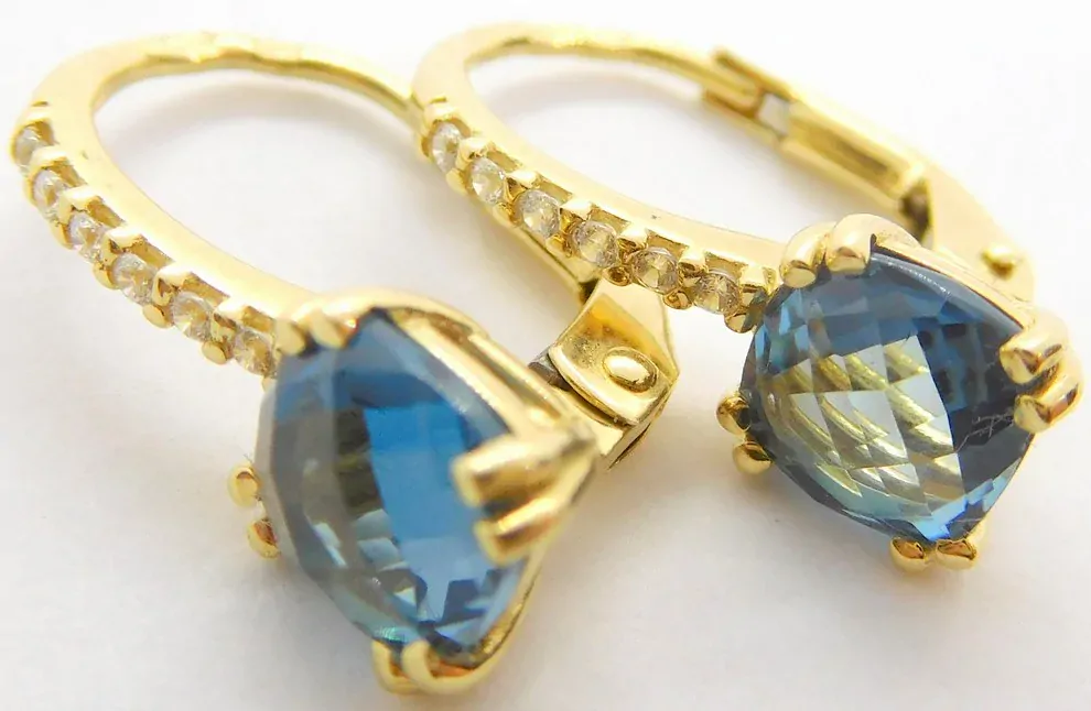 - Klenoty Budín Dámské klasické zlaté náušnice se zirkony a blue topazy 585/2,53gr HK2240