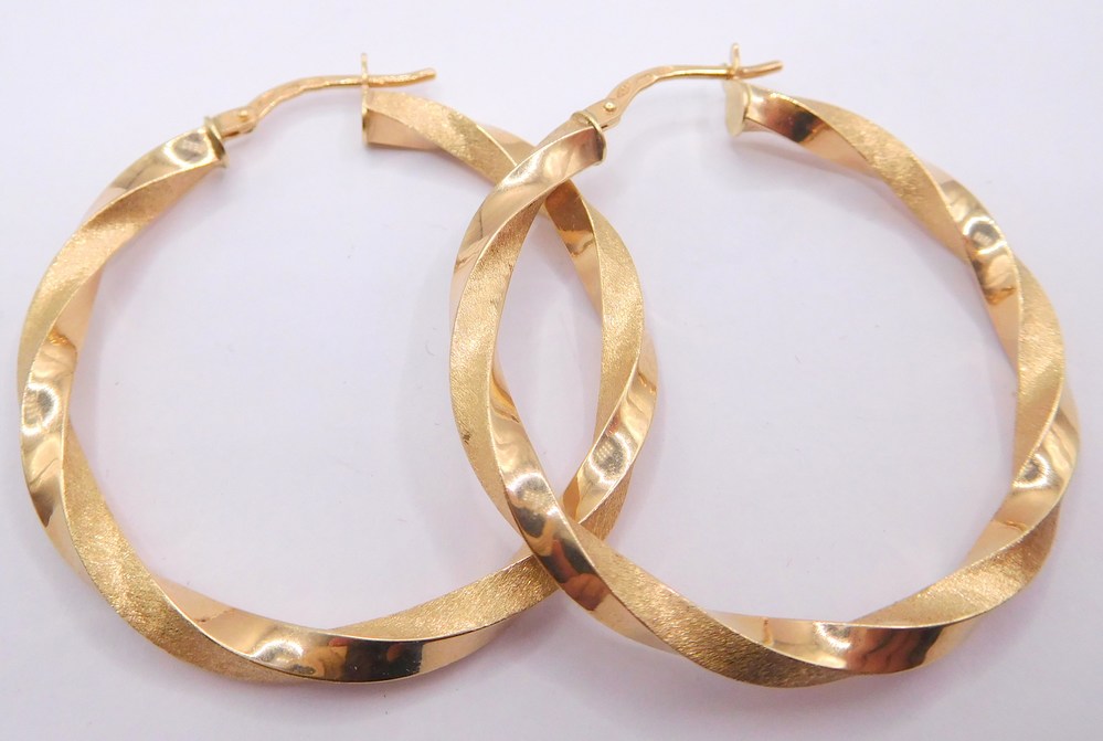 - Klenoty Budín Dámské kruhové gravírované zlaté náušnice 3,5cm 585/2,76gr HK2421