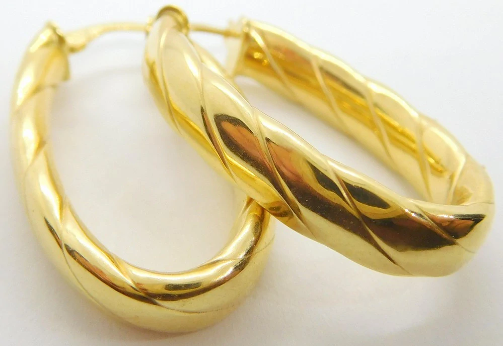 Klenoty Budín Dámské kruhové gravírované zlaté náušnice gravírované oválky 585/3,33gr HK2334