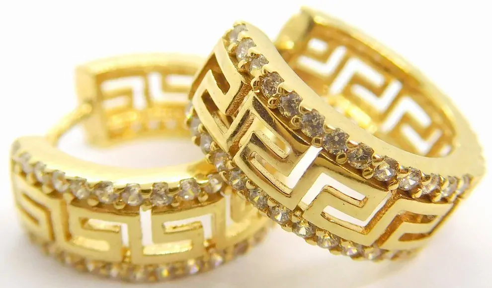 Klenoty Budín Dámské kruhové zlaté náušnice se zirkony - řecký vzor 585/2,87gr HK2243Skladem13 880 Kč/ ks11 471 Kč bez DPH