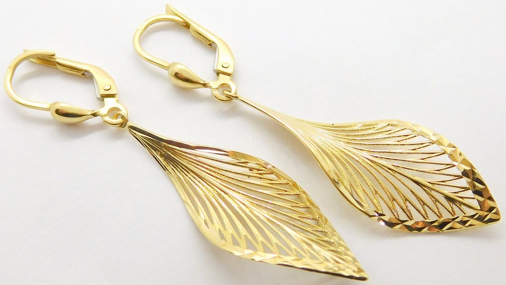 Klenoty Budín Dámské visací gravírované zlaté náušnice 585/2,96gr HK2203