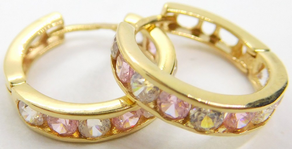 Klenoty Budín Dámské zlaté kruhové náušnice se zirkony a růženíny 585/1,67gr HK2129