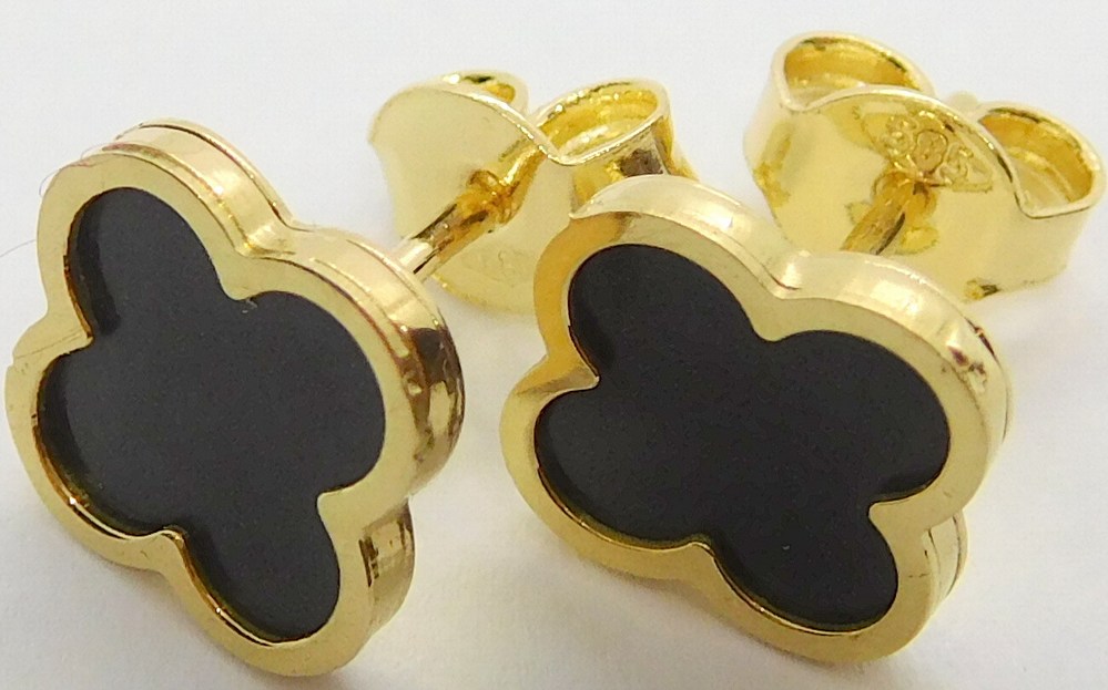- Klenoty Budín Dámské zlaté náušnice ze žlutého zlata s černým smaltem čtyřlístek 585/1,30gr HK2197