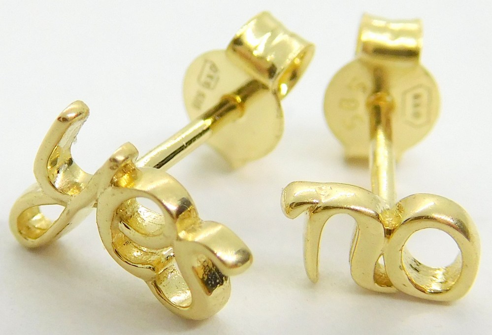Klenoty Budín Dámské zlaté peckové náušnice na puzetku YES and NO 585/0,94gr 03245