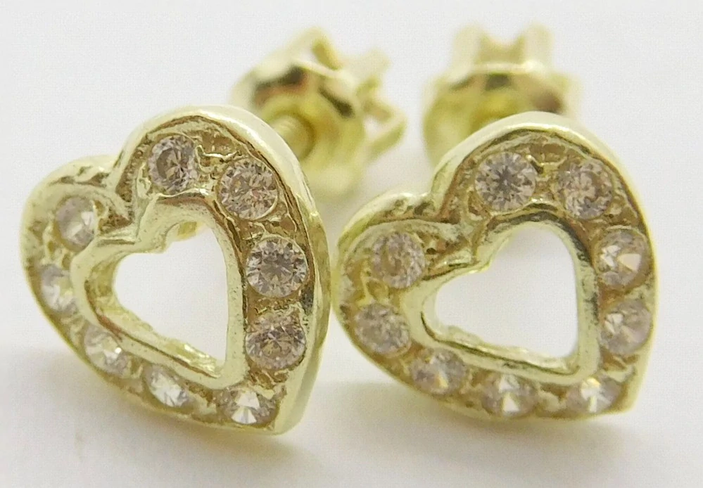 - Klenoty Budín Dámské zlaté peckové náušnice srdce se zirkony na šroubek 585/1,33gr 03428
