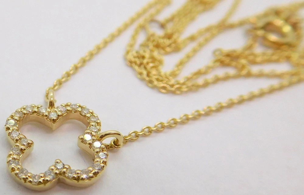 - Klenoty Budín Dámský zlatý diamantový náhrdelník s přívěskem diamantový čtyřlístek 585/1,53gr 0,08ct HKD46