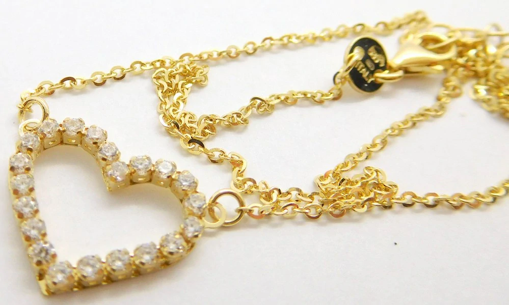 - Klenoty Budín Dámský zlatý náhrdelník ze žlutého zlata se zirkony SRDCE 585/2,26gr 45cm HK4048
