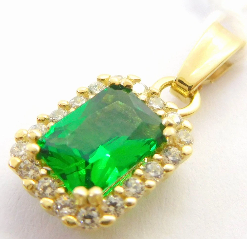 - Klenoty Budín Dámský zlatý přívěsek se zirkony a velkým zeleným smaragdem 585/1,21gr HK3263