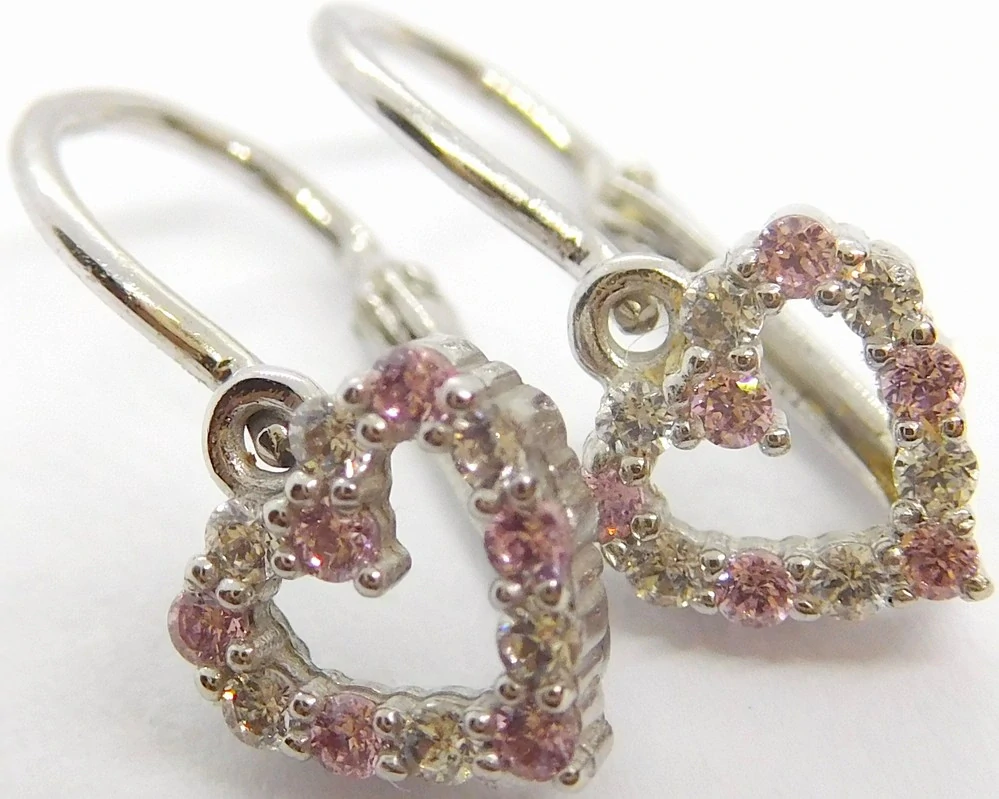 Klenoty Budín Dětské srdíčkové náušnice z bílého zlata se zirkony a růženíny 585/1,40gr HK2373