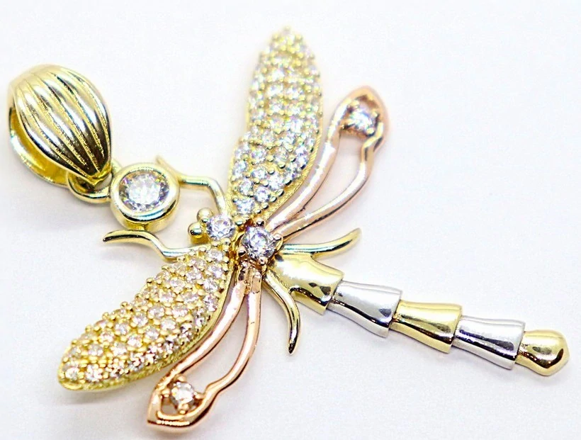 Klenoty Budín Gravírovaný přívěsek se zirkony - vážka ze tří barev zlata 585/2,92gr HK3237