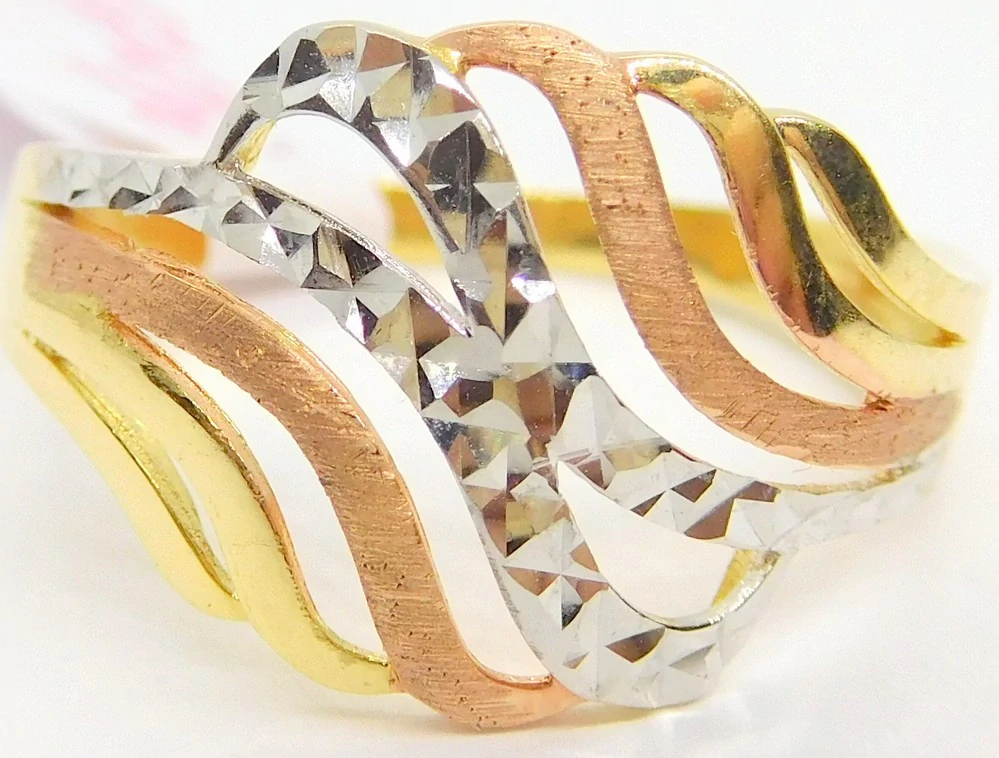 Klenoty Budín Mohutný dámský prsten ze tří barev zlata (růžové,bílé a žluté) 585/2,04gr vel. 62 HK1240