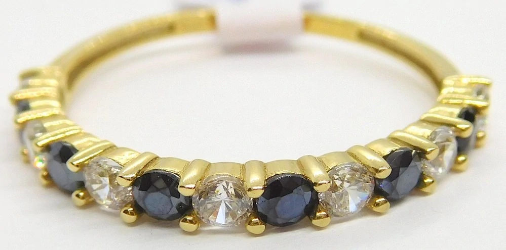 - Klenoty Budín Mohutný dámský zlatý prsten se zirkony a modrými safíry 585/1,68gr vel. 60 HK1238