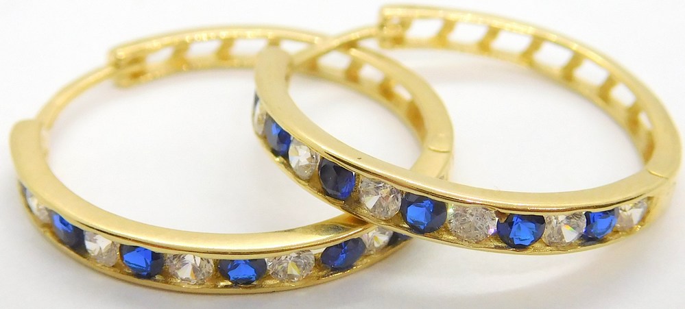 Klenoty Budín Velké zlaté kruhy náušnice se zirkony a modrými safíry 585/2,48gr HK2165Skladem12 350 Kč/ ks10 207 Kč bez DPH