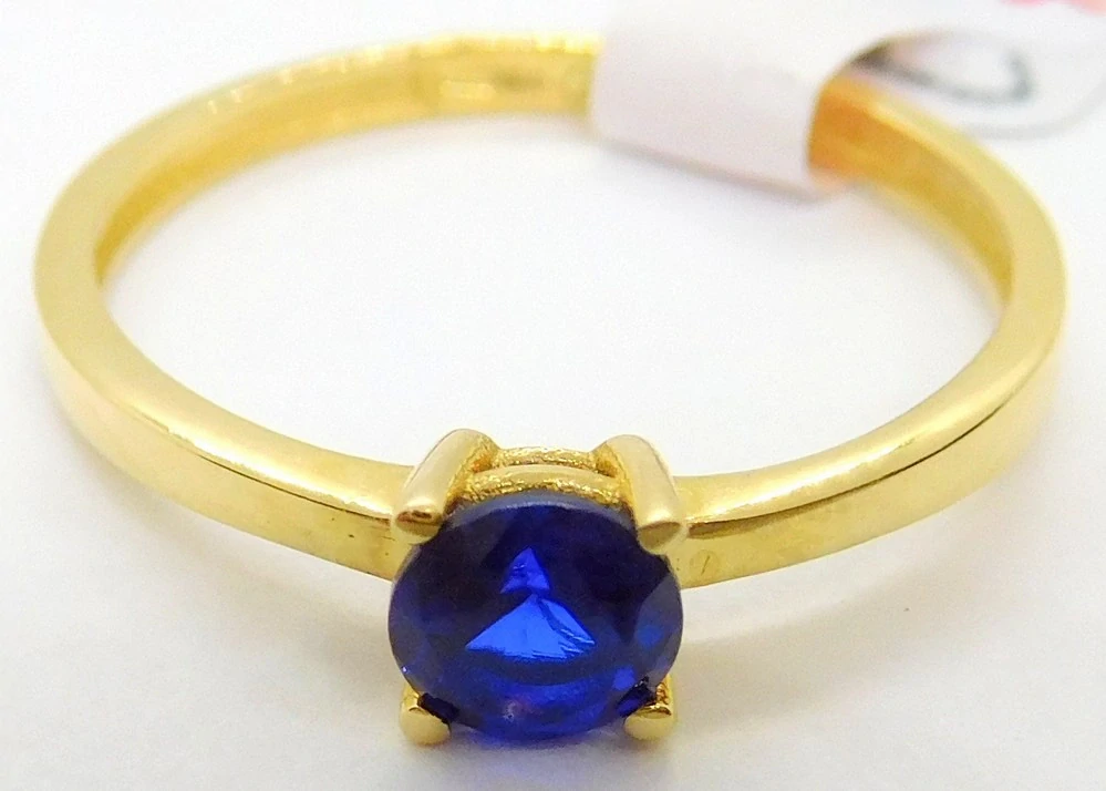 - Klenoty Budín Zásnubní dámský zlatý prsten s modrým safírem 585/1,02gr vel. 53 HK1262