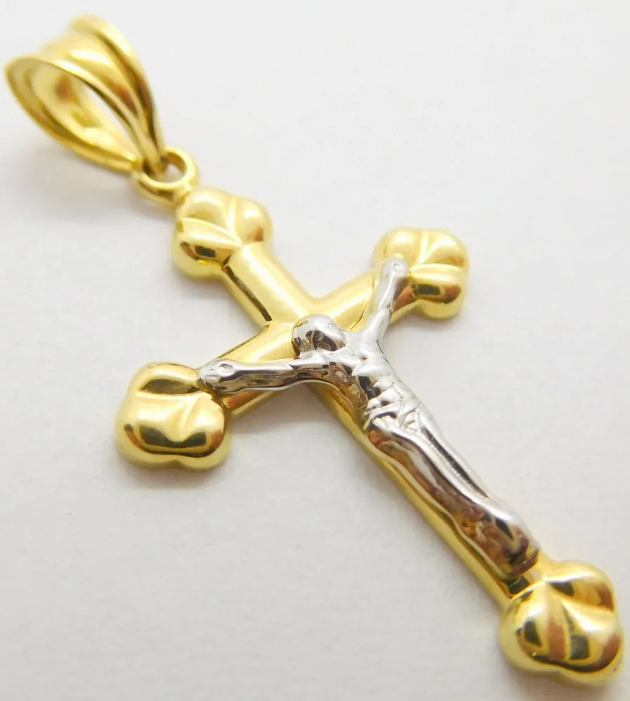 - Klenoty Budín Zlatý gravírovaný přívěsek z bílého a žlutého zlata křížek 585/0,83gr 01658