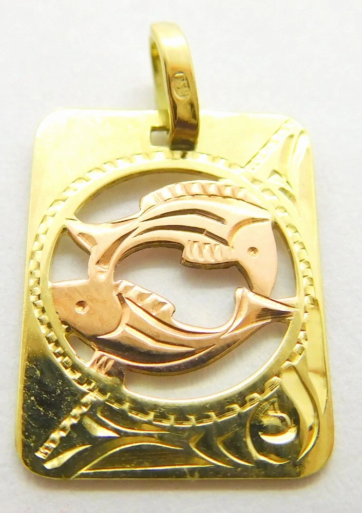 Klenoty Budín Zlatý přívěsek s gravírováním - znamení RYBY z růžového a žlutého zlata 585/0,86gr GUPYN-68881