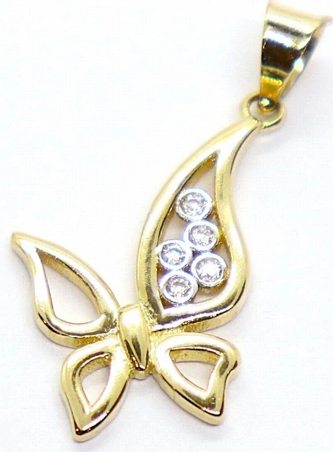 Klenoty Budín - Zlatý přívěsek ze žlutého zlata se zirkony motýlek 585/1,09gr HK3236