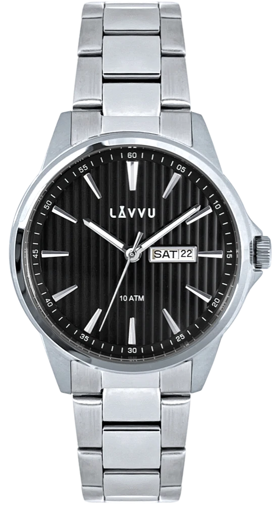 Spolehlivé hodinky LAVVU z nerezové oceli vynikají špičkovou odolností díky prověřeným materiálům a kvalitním komponentům. S vodotěsností 100M zvládnou náročné podmínky i vodní sporty. Číselník s výraznými indexy zajistí perfektní čitelnost a ukazatel data se dnem v týdnu bude vaším praktickým společníkem každý den. Vyměnitelný řemínek je možné zkrátit a přizpůsobit obvodu ruky.