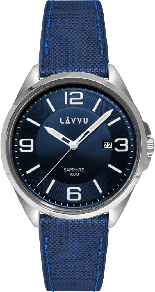 LAVVU Pánské modré hodinky se safírovým sklem HERNING Blue LWM0100