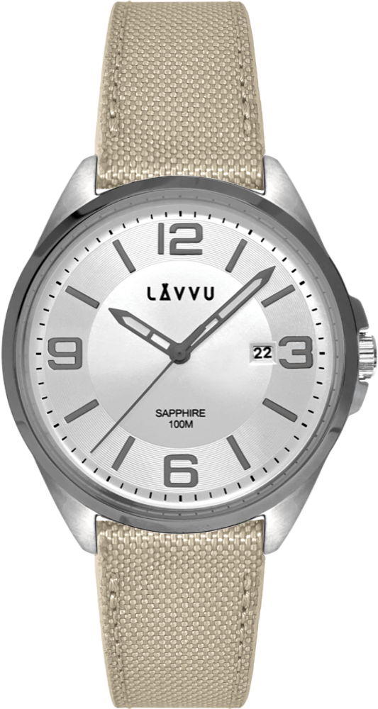 LAVVU Pánské béžové hodinky se safírovým sklem HERNING Grey LWM0098