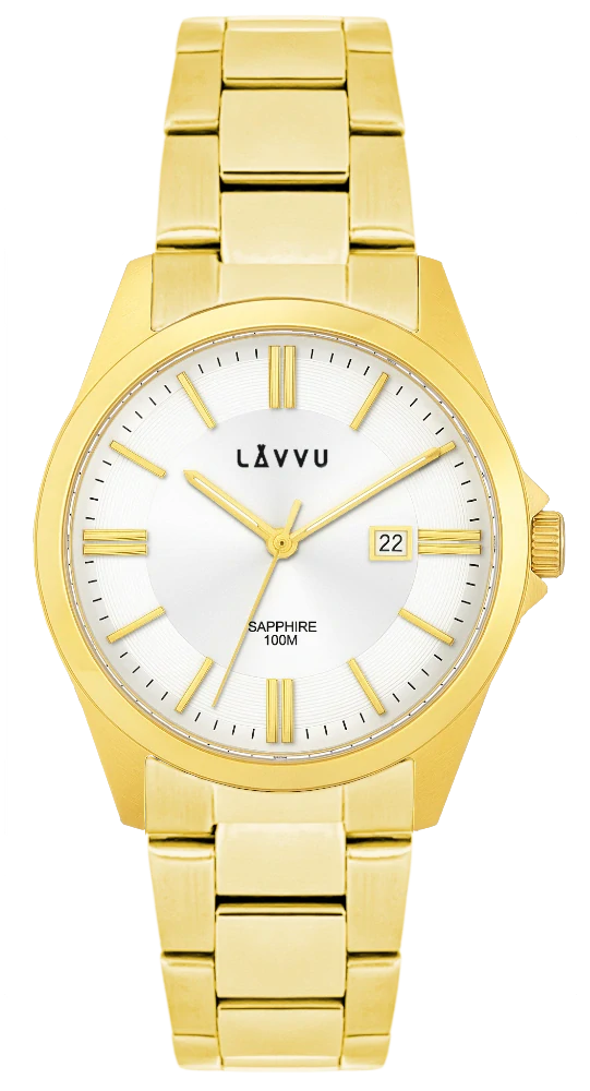 LAVVU Pánské náramkové hodinky se safírovým sklem HALLAND Gold LWM0302