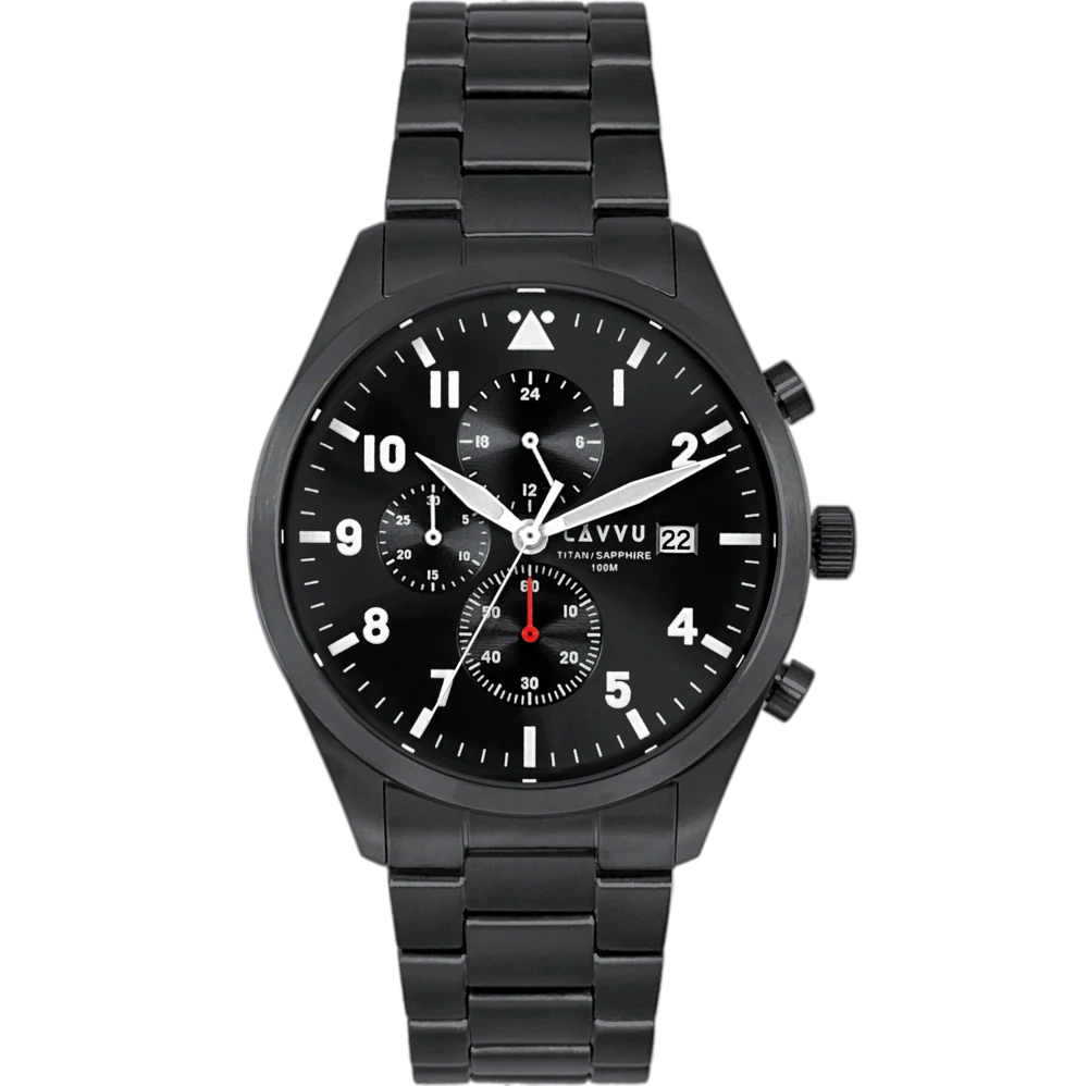 LAVVU Pánské titanové hodinky PILOT Chronograph Black 100M Sapphire LWM0292 černé