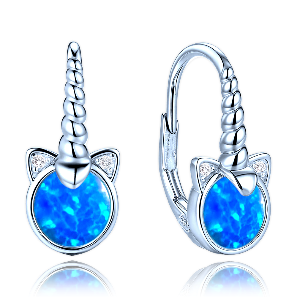 - MINET Dětské stříbrné náušnice jednorožci s modrými opály a bílými zirkony