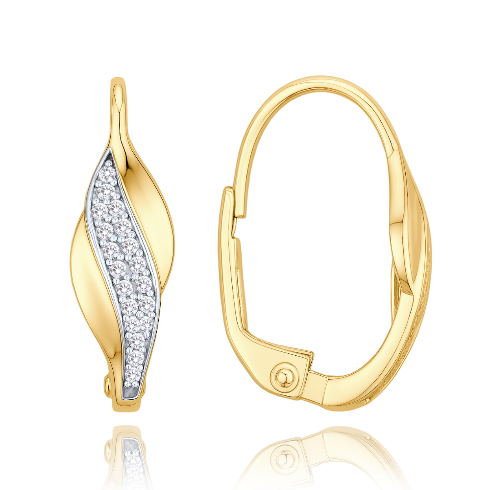 - MINET Elegantní zlaté náušnice s bílými zirkony Au 585/1000 2,15g