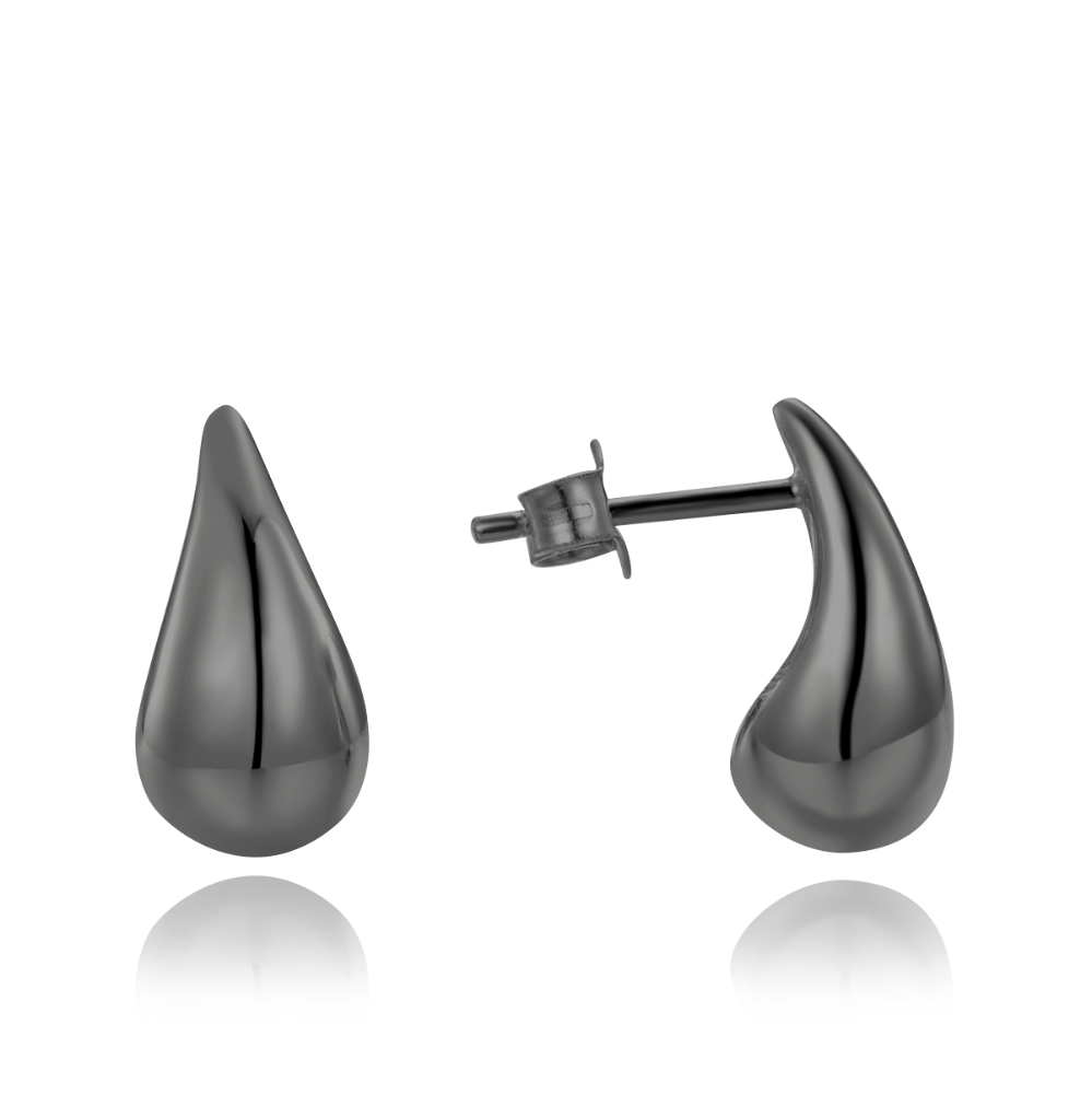 - MINET Moderní černé stříbrné náušnice kapky