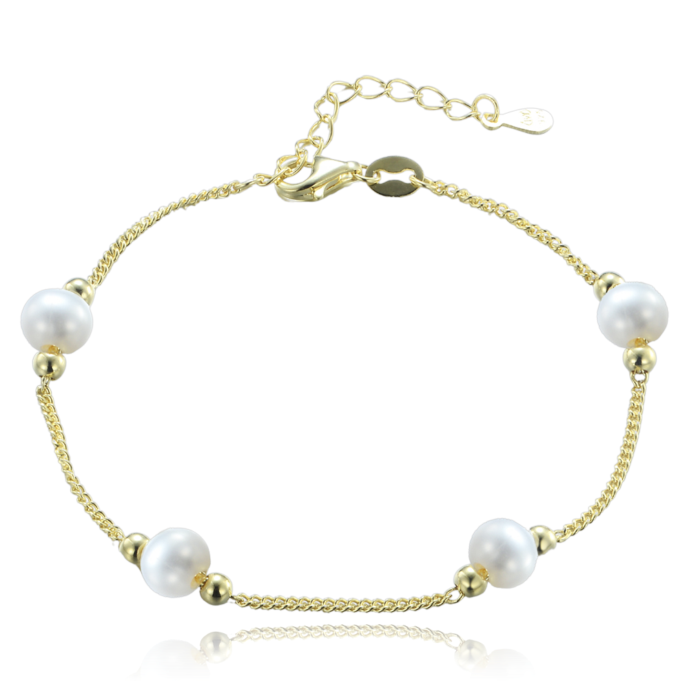 MINET Pozlacený stříbrný náramek s přírodními perlami JMAS7056GB16