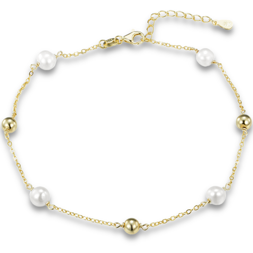 MINET Pozlacený stříbrný řetízek na kotník s kuličkami a přírodními perlamiSkladem1 089 Kč/ ks900 Kč bez DPH