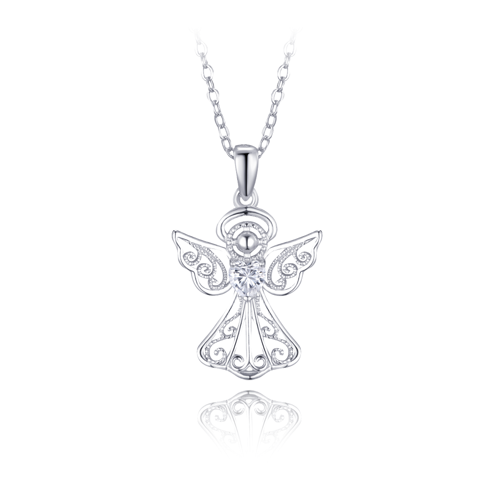 - MINET Stříbrný náhrdelník anděl s bílým zirkonem JMAN0599SN45
