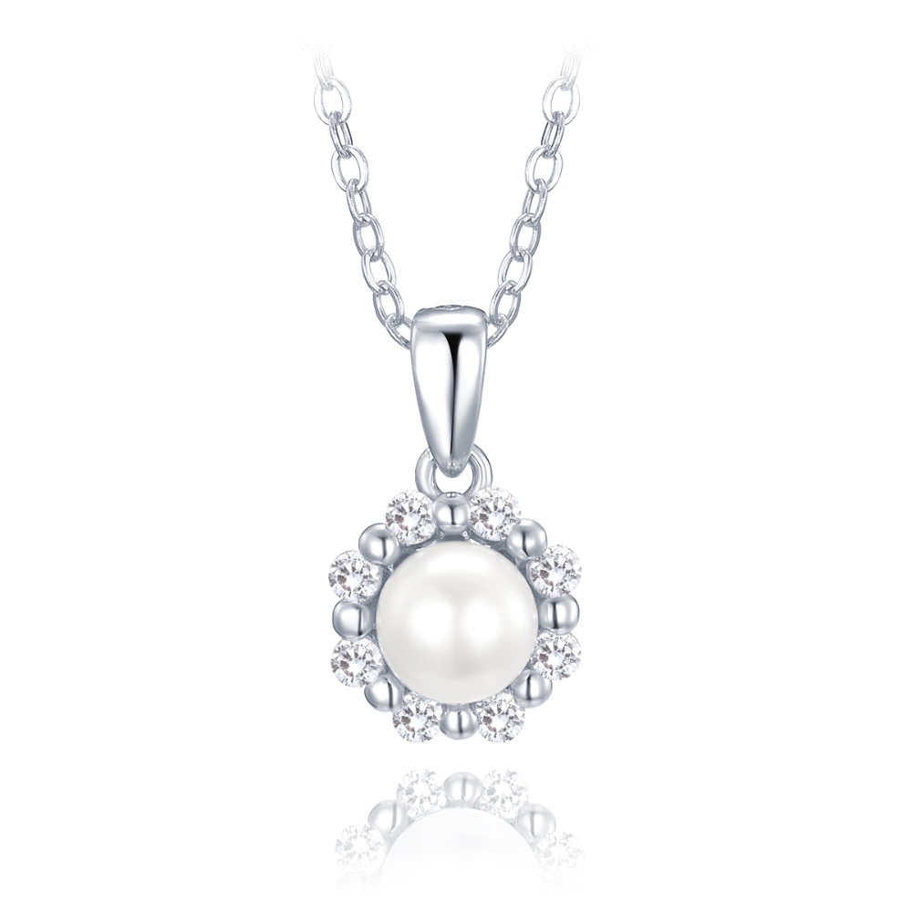 - MINET Stříbrný náhrdelník s přírodní perlou a bílými zirkony