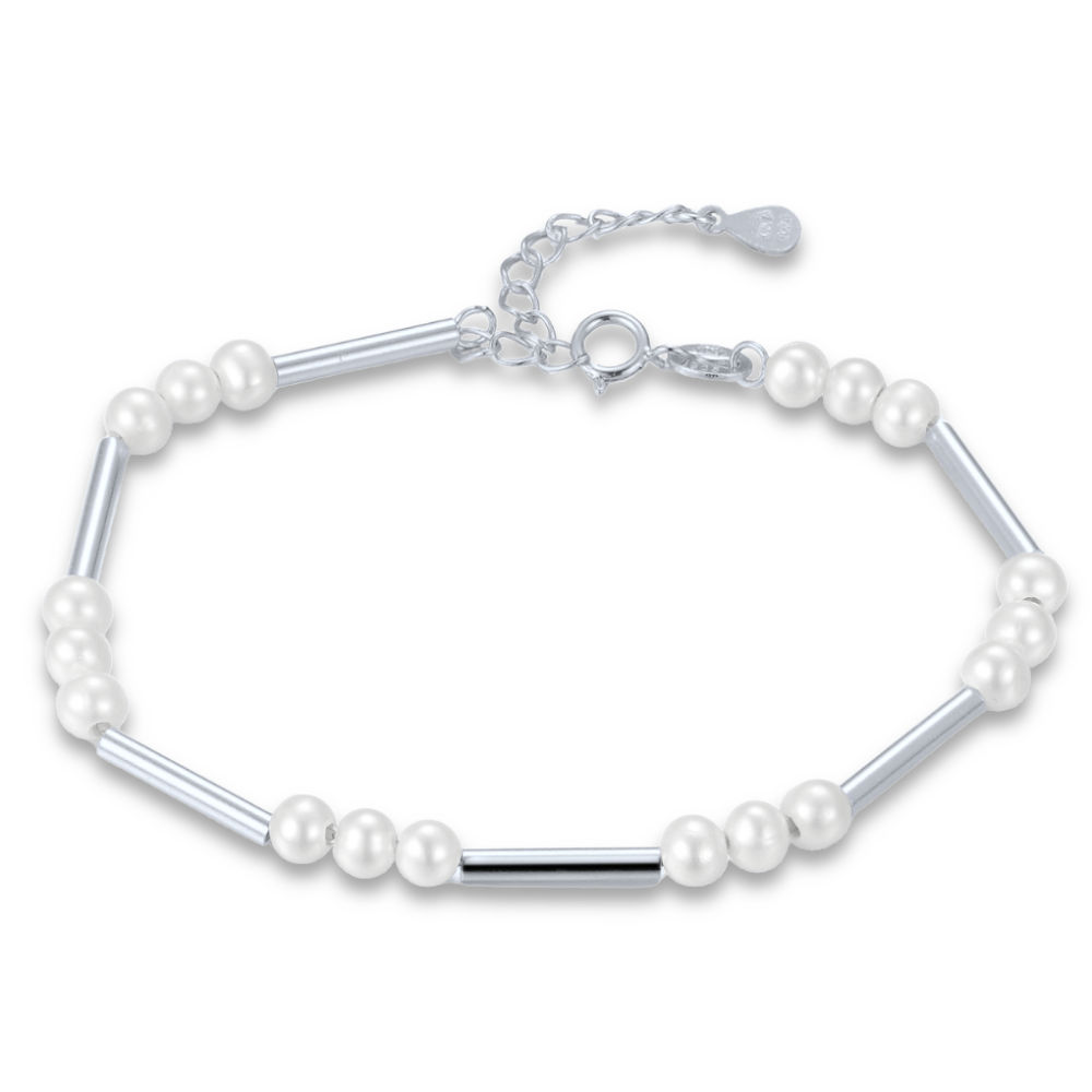 MINET Stříbrný náramek s přírodními perlami JMAS7059SB16
