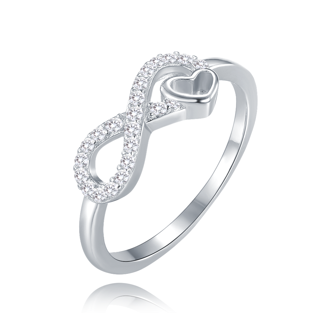 - MINET Stříbrný prsten nekonečno se srdíčkem a bílými zirkony vel. 61