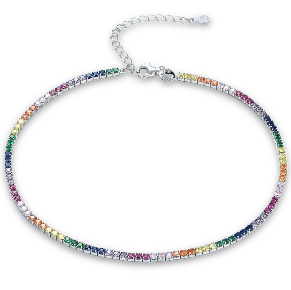 - MINET Stříbrný tenisový řetízek na kotník s různobarevnými zirkony