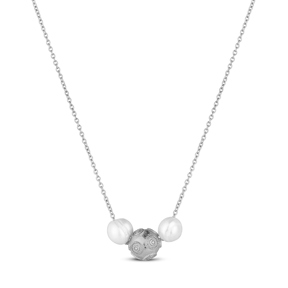JVD Dámský ocelový náhrdelník s perlami SSSN0075XI8P145