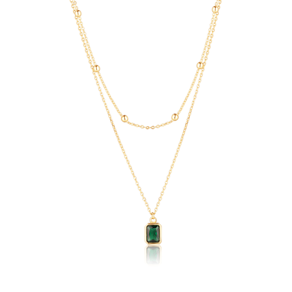 JVD Dámský stříbrný pozlacený náhrdelník se zeleným smaragdem SVLN0636X61GZ45