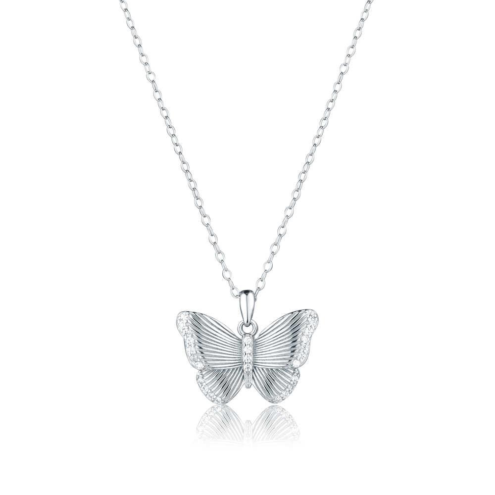 JVD Dámský stříbrný náhrdelník s motýlkem SVLN0683X61BI45