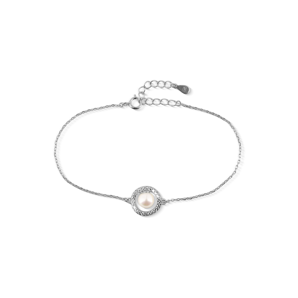 JVD Dámský stříbrný náramek se zirkony a perlou SVLB0813SH2P118