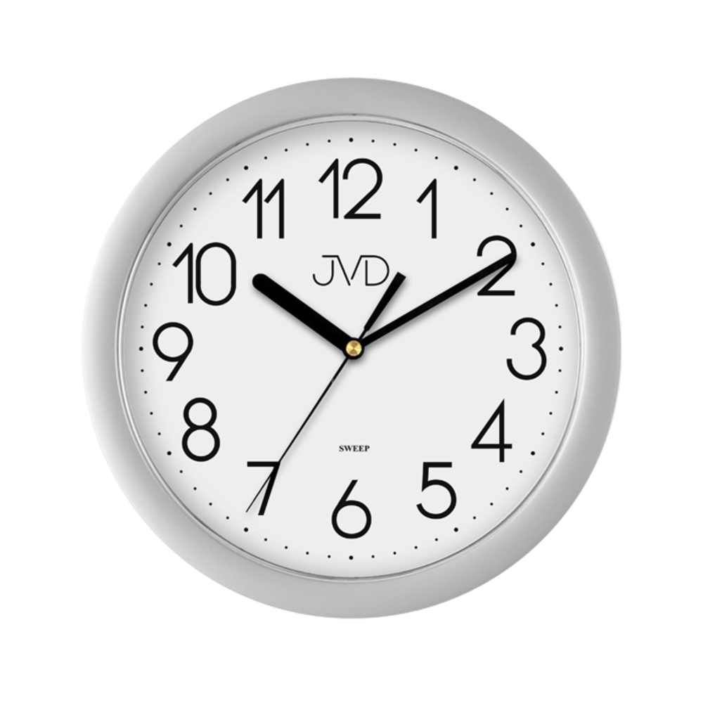JVD Stříbrné plastové nástěnné netikající tiché hodiny JVD sweep HP612.7Skladem349 Kč/ ks288 Kč bez DPH
