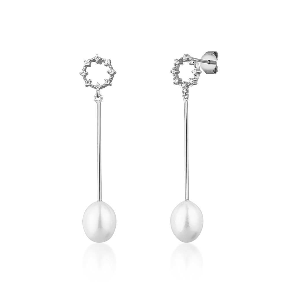 JVD Dámské stříbrné visací náušnice s perlami na puzetku SVLE1586XD2P100