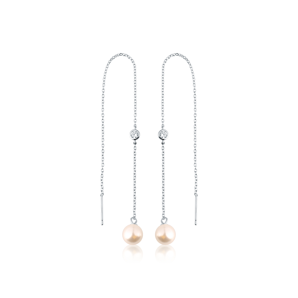 JVD Dámské stříbrné provlékací visací náušnice s perlami SVLE2863X610000