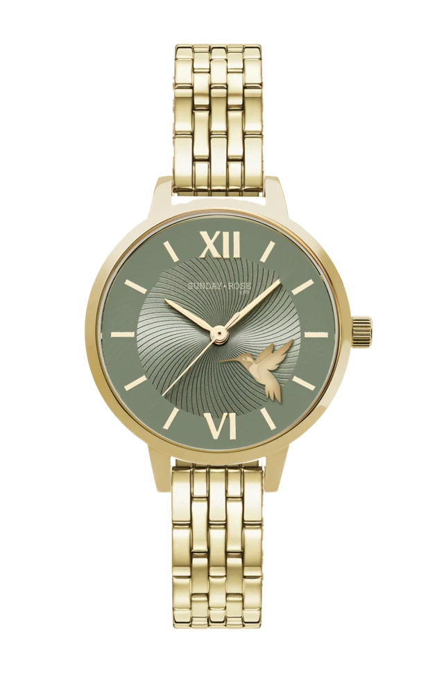 Ani letos nezůstává kolekce Sunday Rose bez nových přírůstků. Každoročně ji rozšiřujeme o nové modely, které zachovávají charakteristický styl značky, který je ženský, jemný a elegantní. Ciferník letos zdobí reliéfní sturktura s motivem motýla nebo kolibříka, která vytváří plasticiký a živý dojem. Barevné kombinace působí harmnicky, od nadčasové oceli přes romantické zlaté tóny až po moderní kontrasty tmavého číselníku a zlatých akcetnů. Článkový náramek dodává hodinkám elegantní vzhled a současně zajišťuje pohodlené nošení.